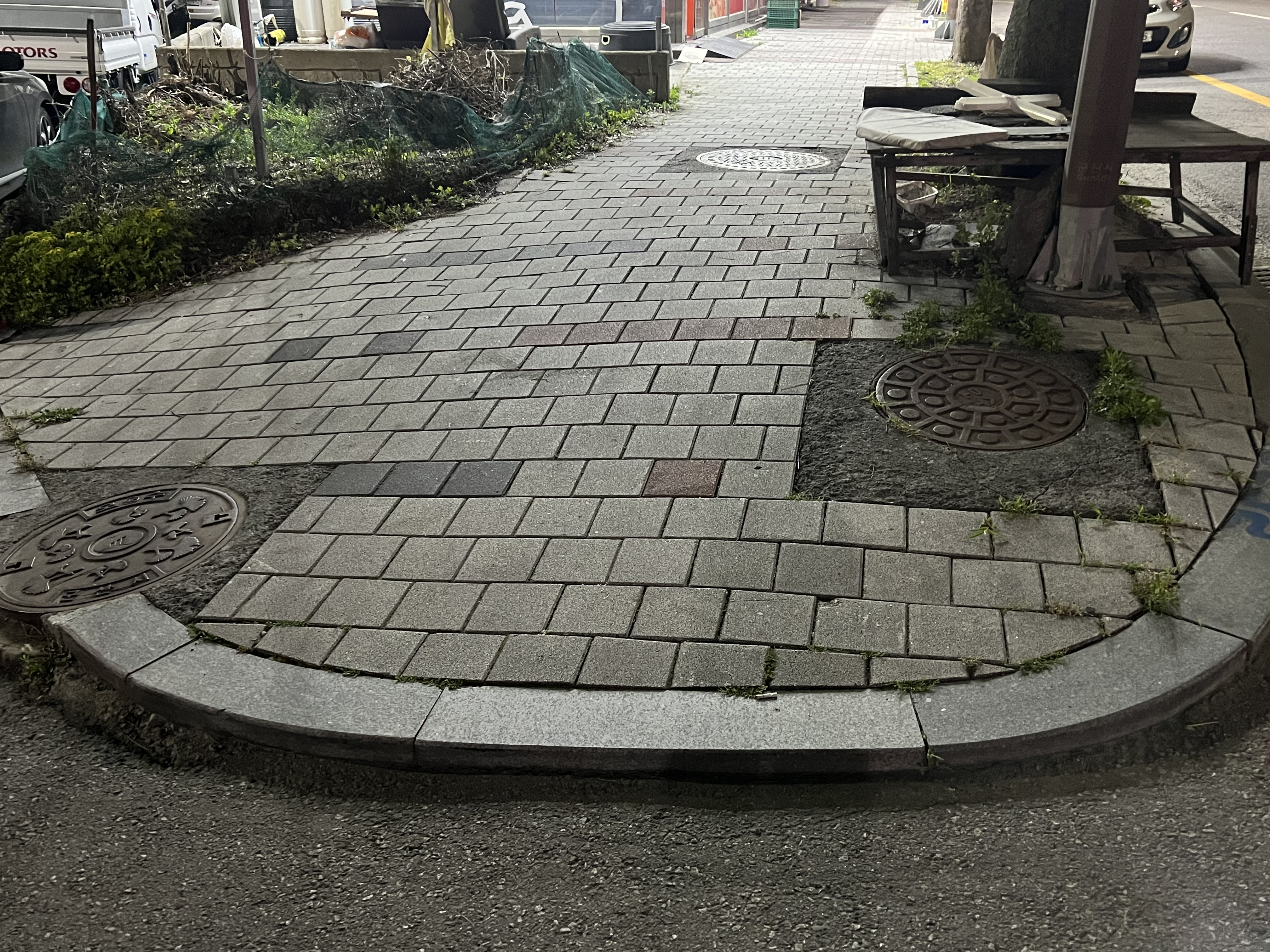 휠체어나 장애인 스쿠터, 전동퀵보드, 자전거 등이 경사로에서 올라갈 수가 없어서 매우 불편하고 위험합니다.