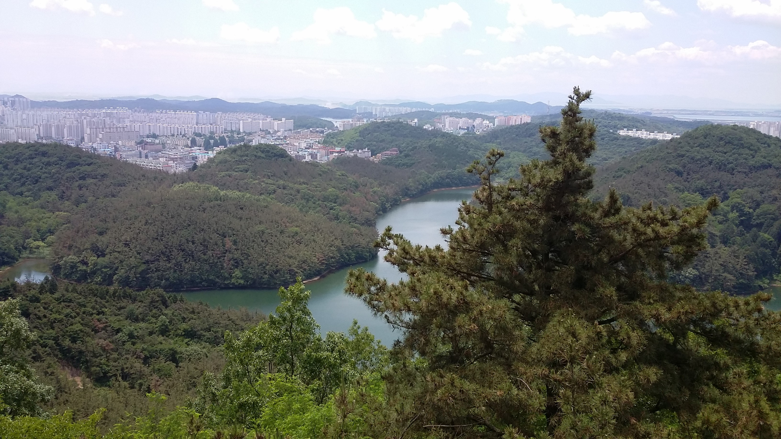 그러나, 점방산 바로 아래에 내려다 보이는 수원지(호수)는 전망대앞 큰소나무에 가려 거의 보이지 않고 점방산 주변을 답답하게 하고 있는 듯 합니다. 산은 물과의 조화로 아름다운 경관을 만들어 낸다고 보는데 큰소나무 한그루에 가려서 반감하고 있는 것입니다.