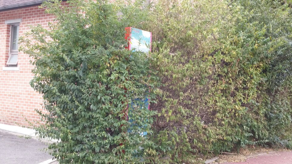 수목이 화장실과 인근 상가 입구를 가린 사진을 첨부합니다.