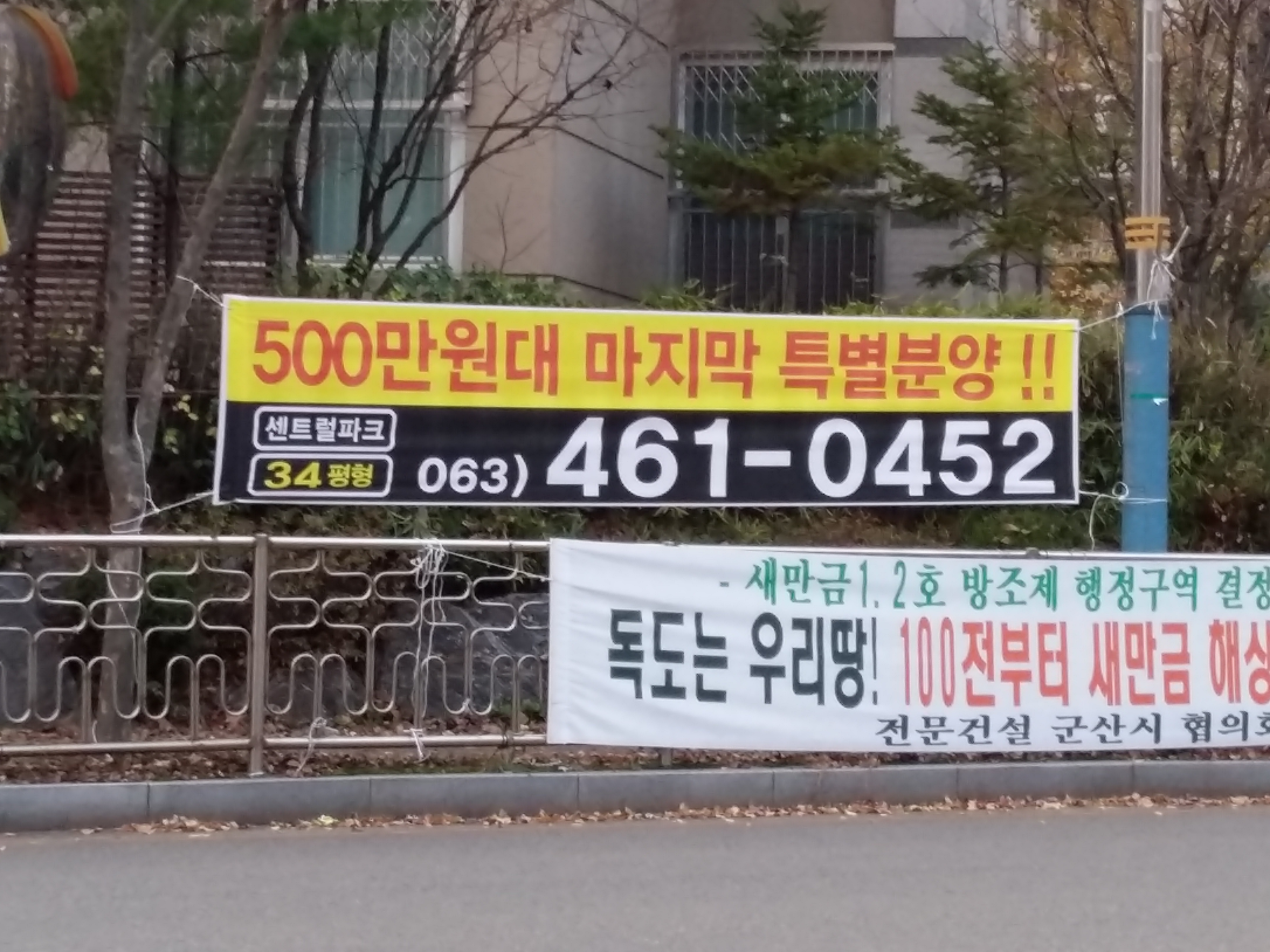 주말이면 어김없이 군산시 도처를 활개치는 아파트 분양 불법 현수막들
