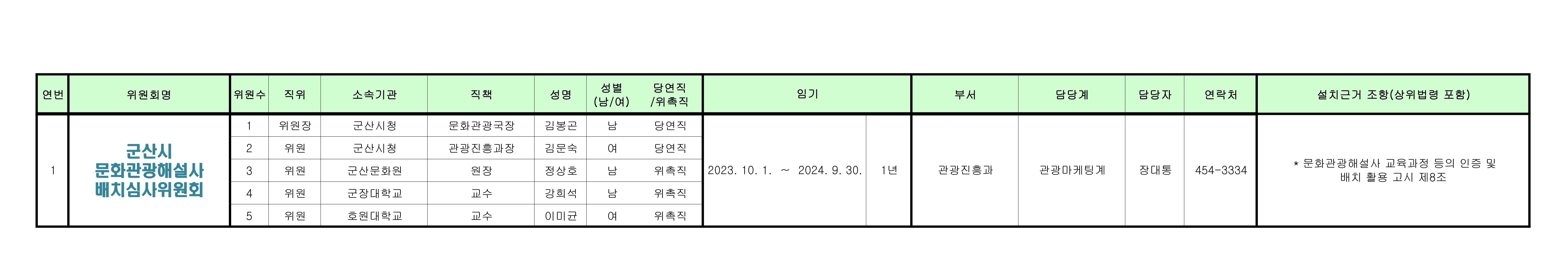군산시청 행정지원과 자치행정계에서 제작한 "위원회 명단공개"저작물은