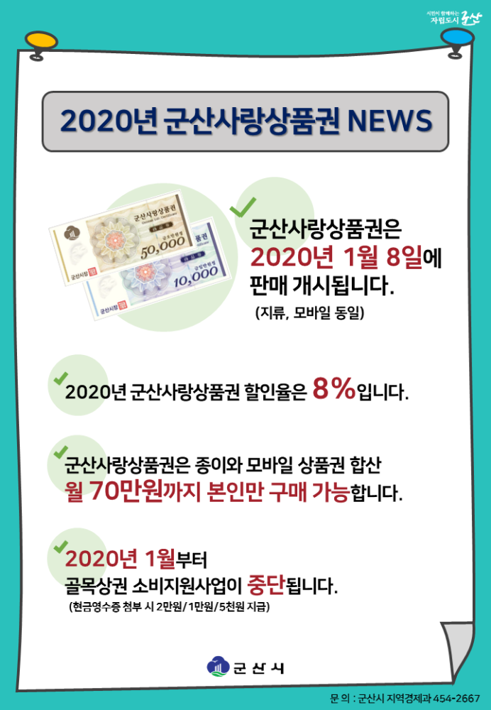 | 7 | 2020년 군산사랑상품권 판매 일정 안내 |