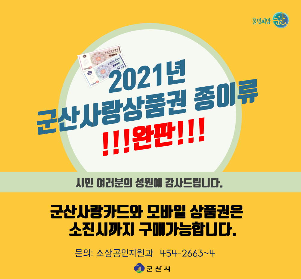| 103 | 2021년 군산사랑상품권 종이류/모바일 전액 소진!! |