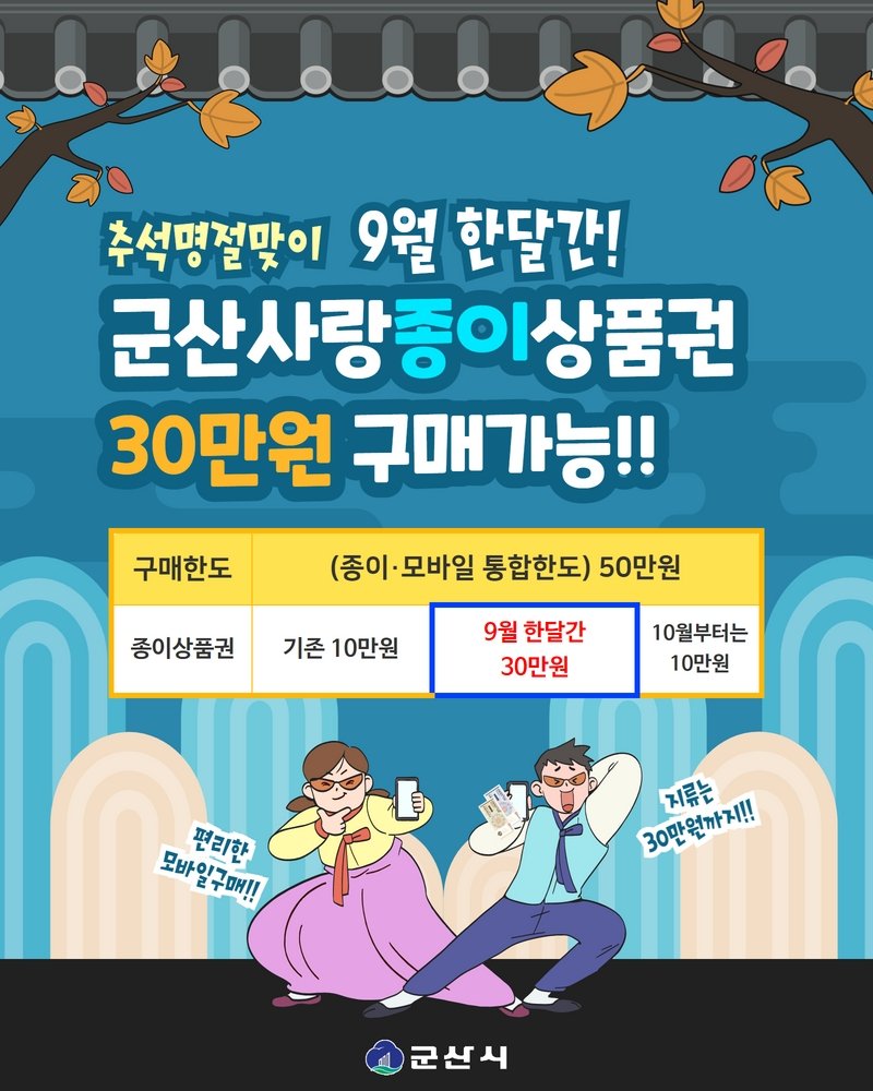 | 108 | 9월 한달간!! 종이상품권 30만원 구매가능!! |