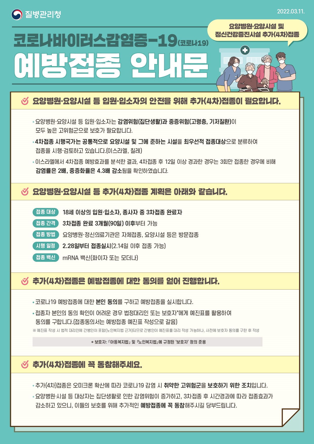 | 1027 | 노인요양시설 등 추가접종(4차) 홍보 안내 |