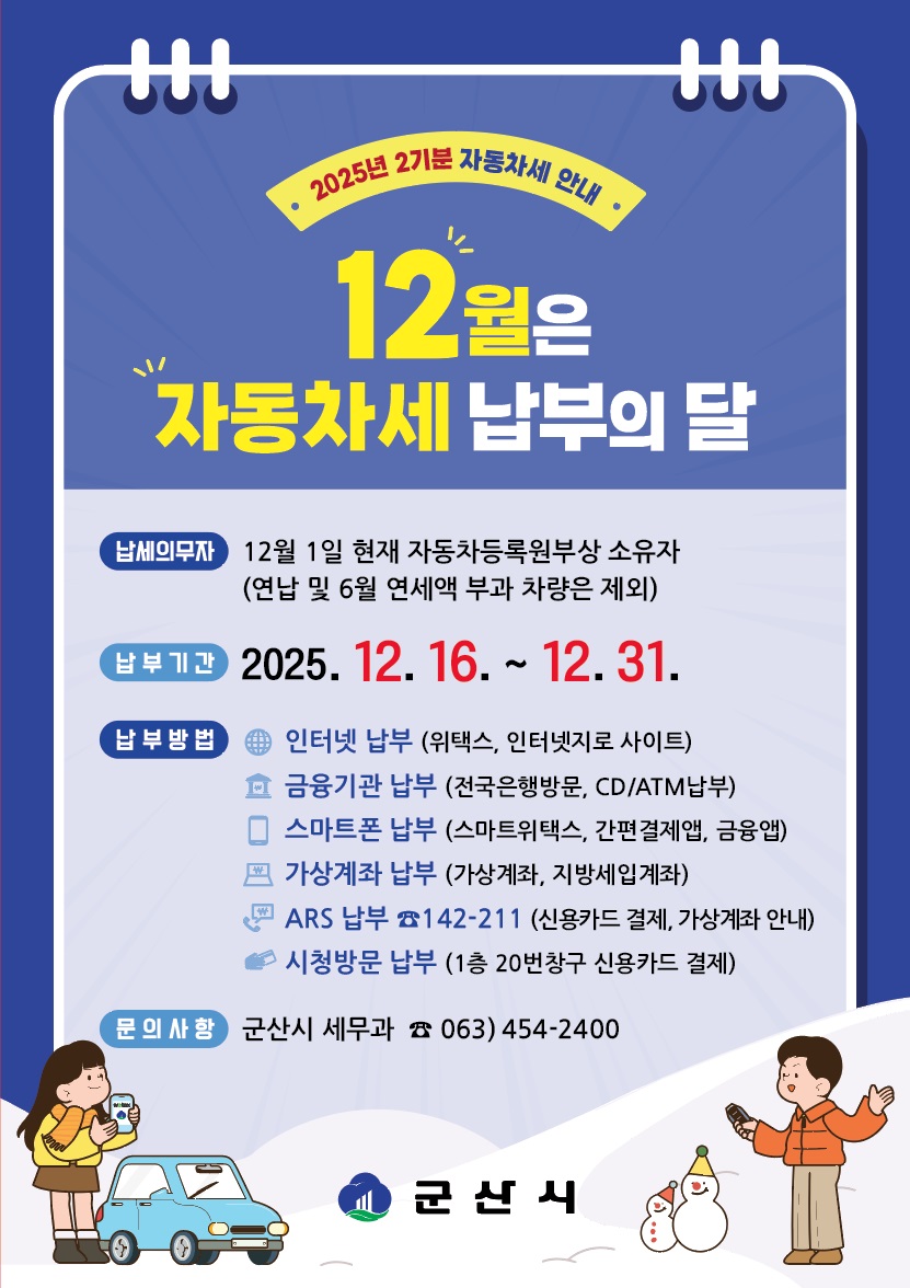 12월은 제2기분 자동차세 납부의 달입니다.
