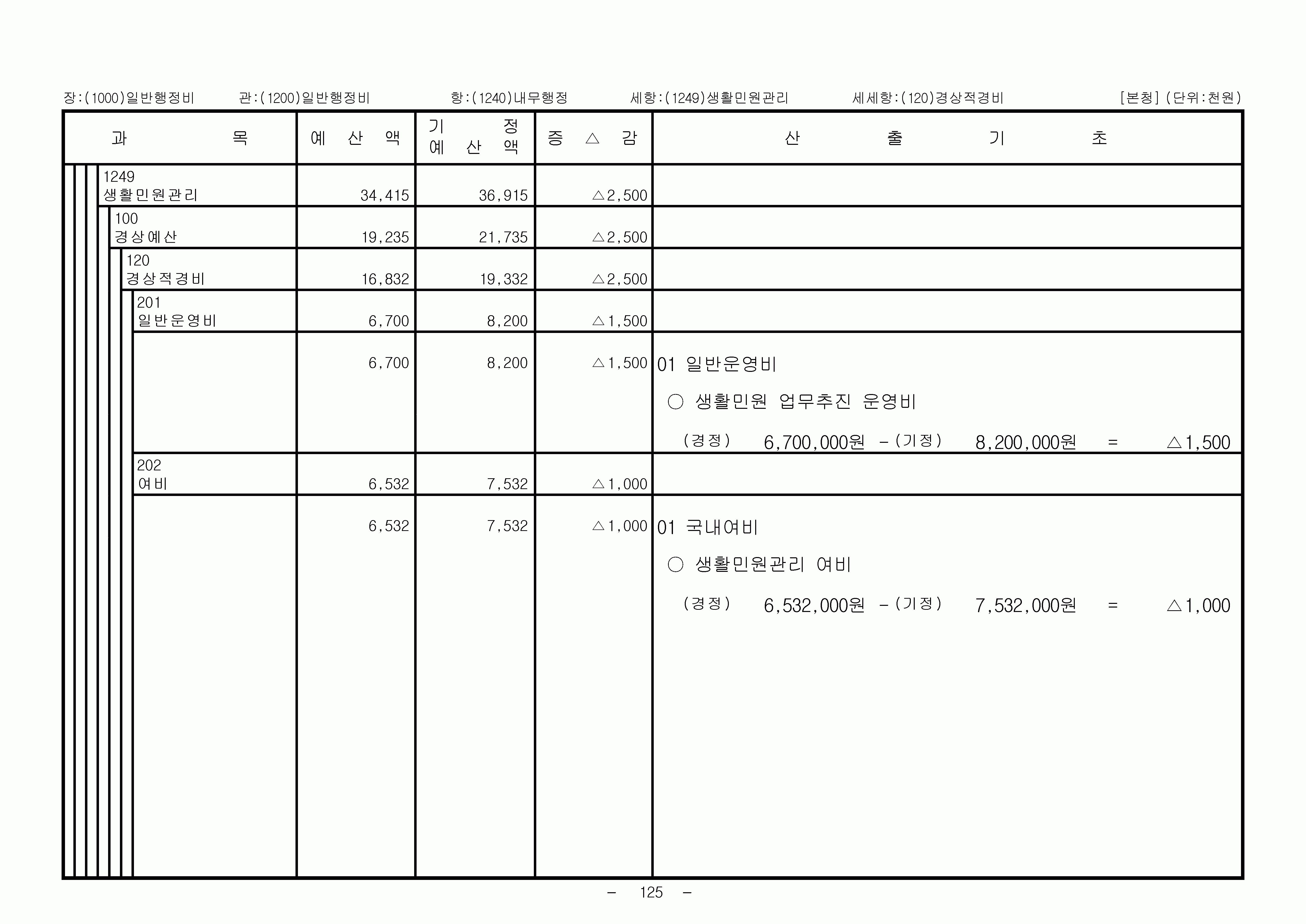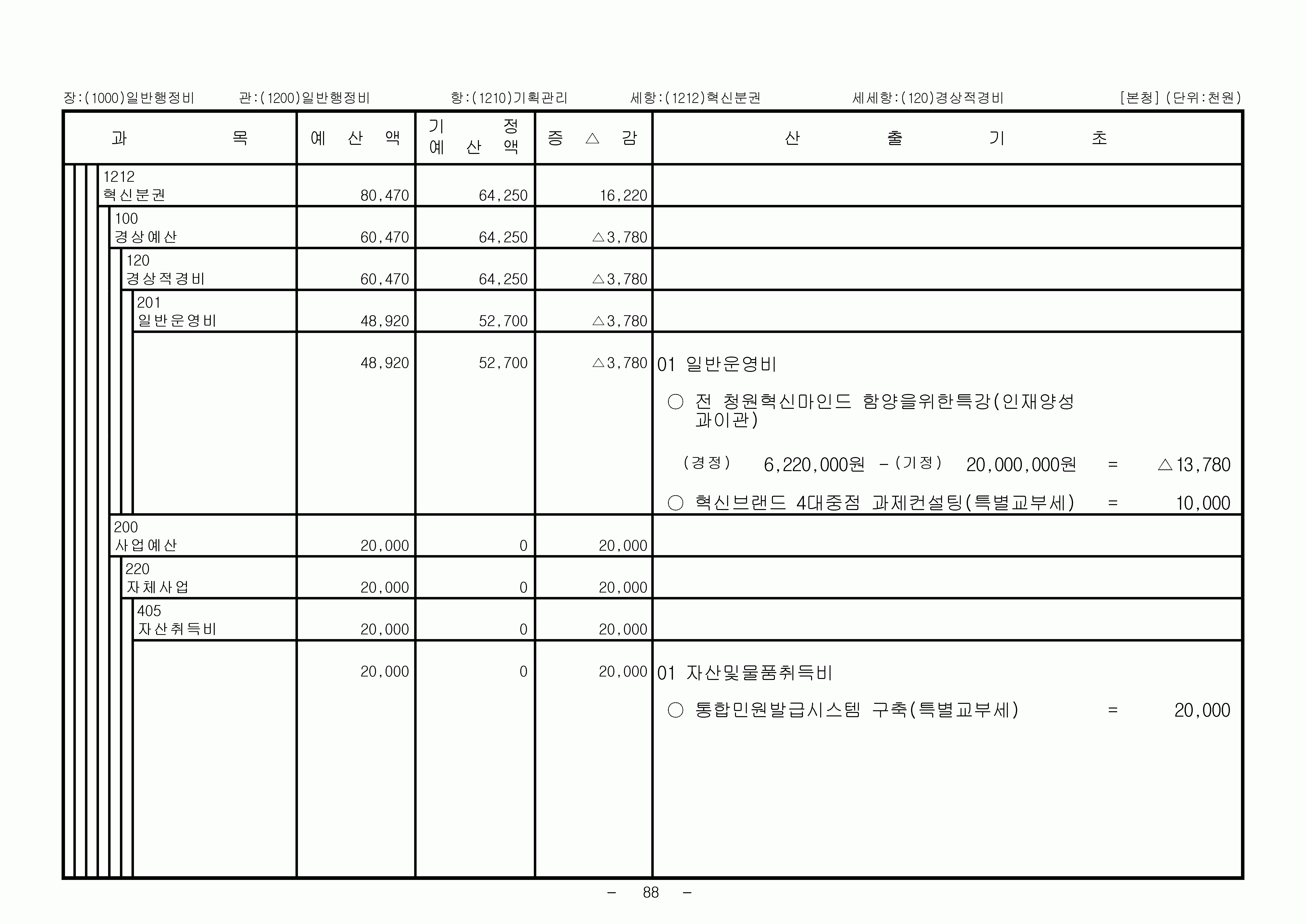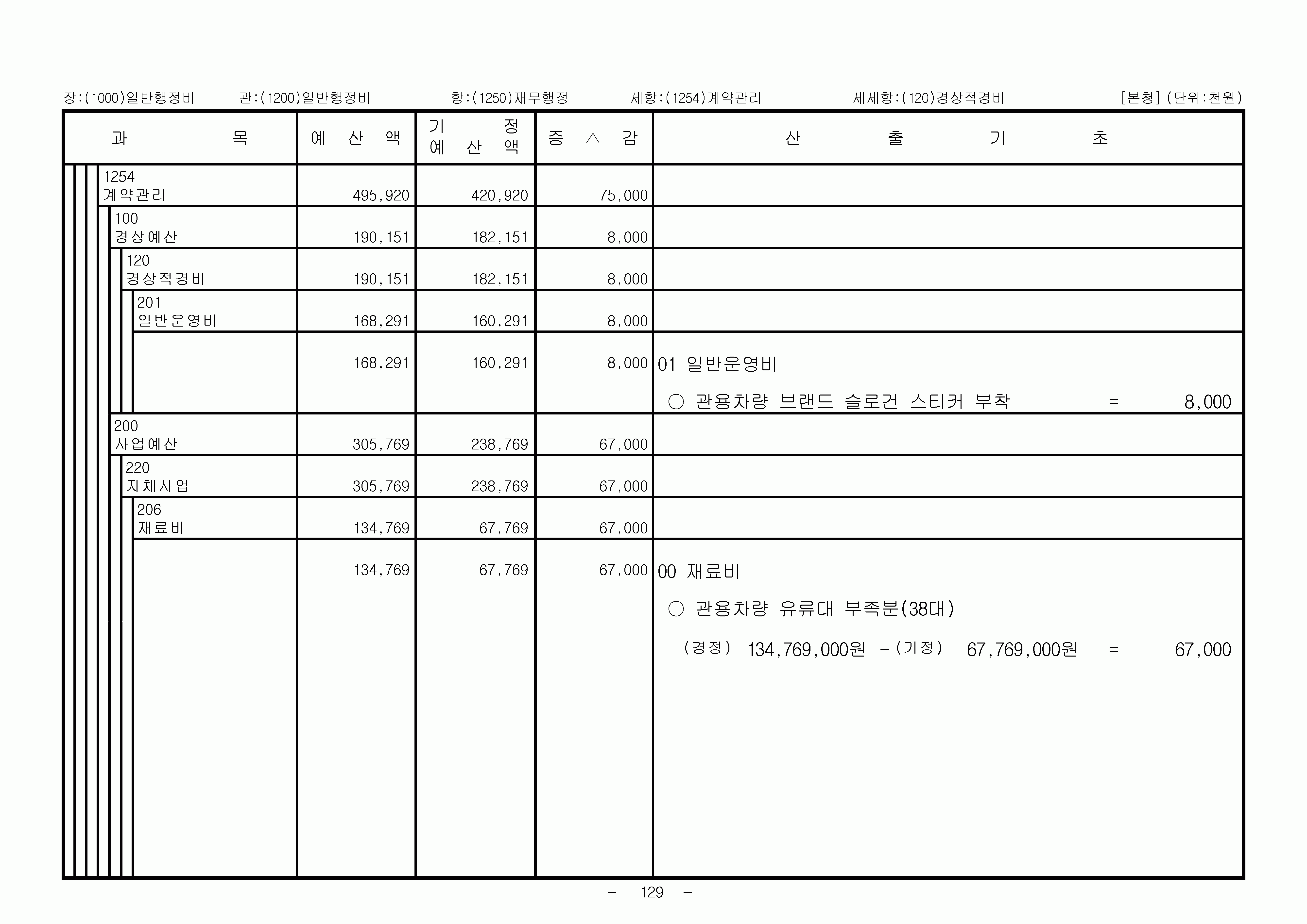 2007년 1차 추경예산총칙 일반회계세출 일반행정