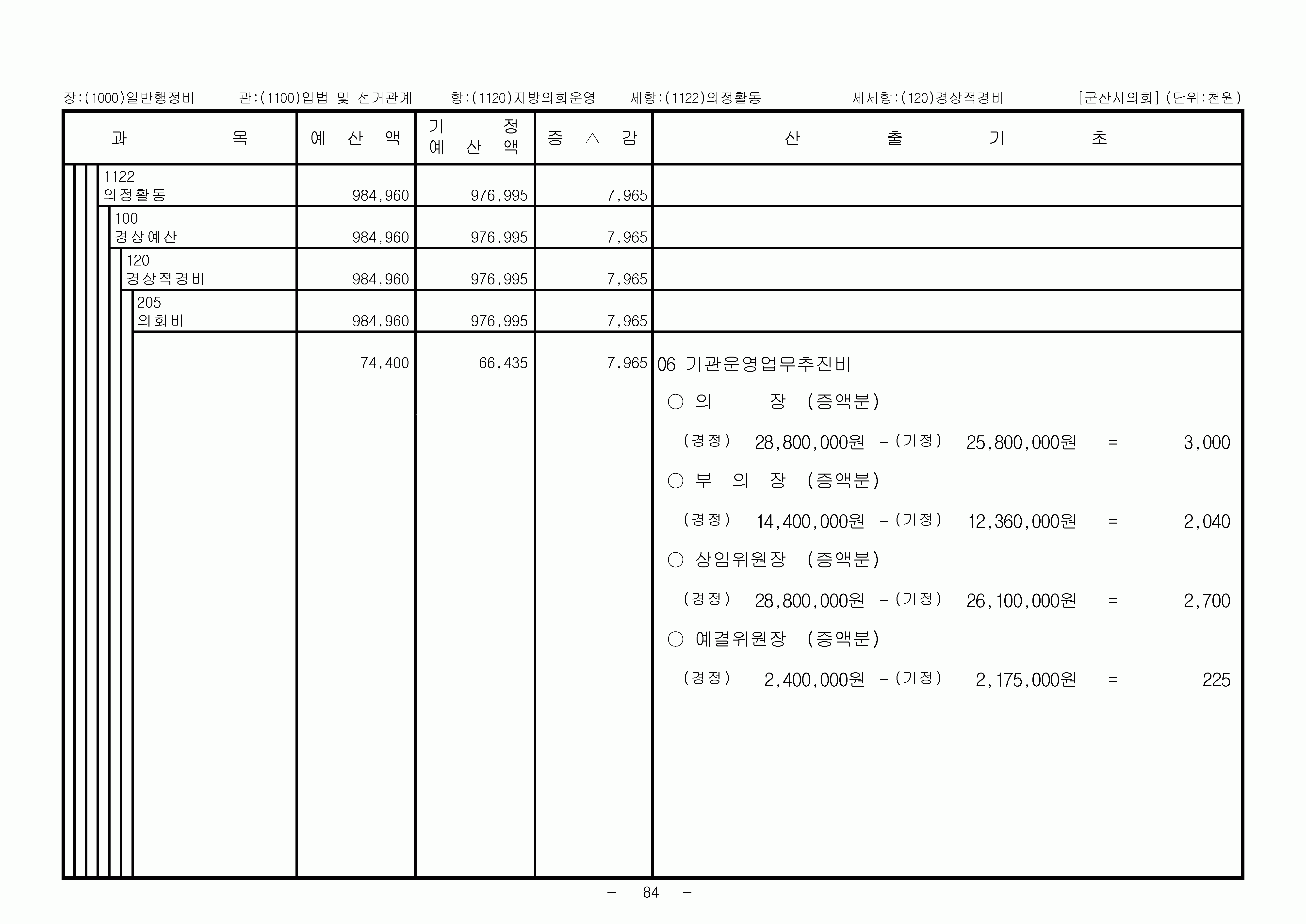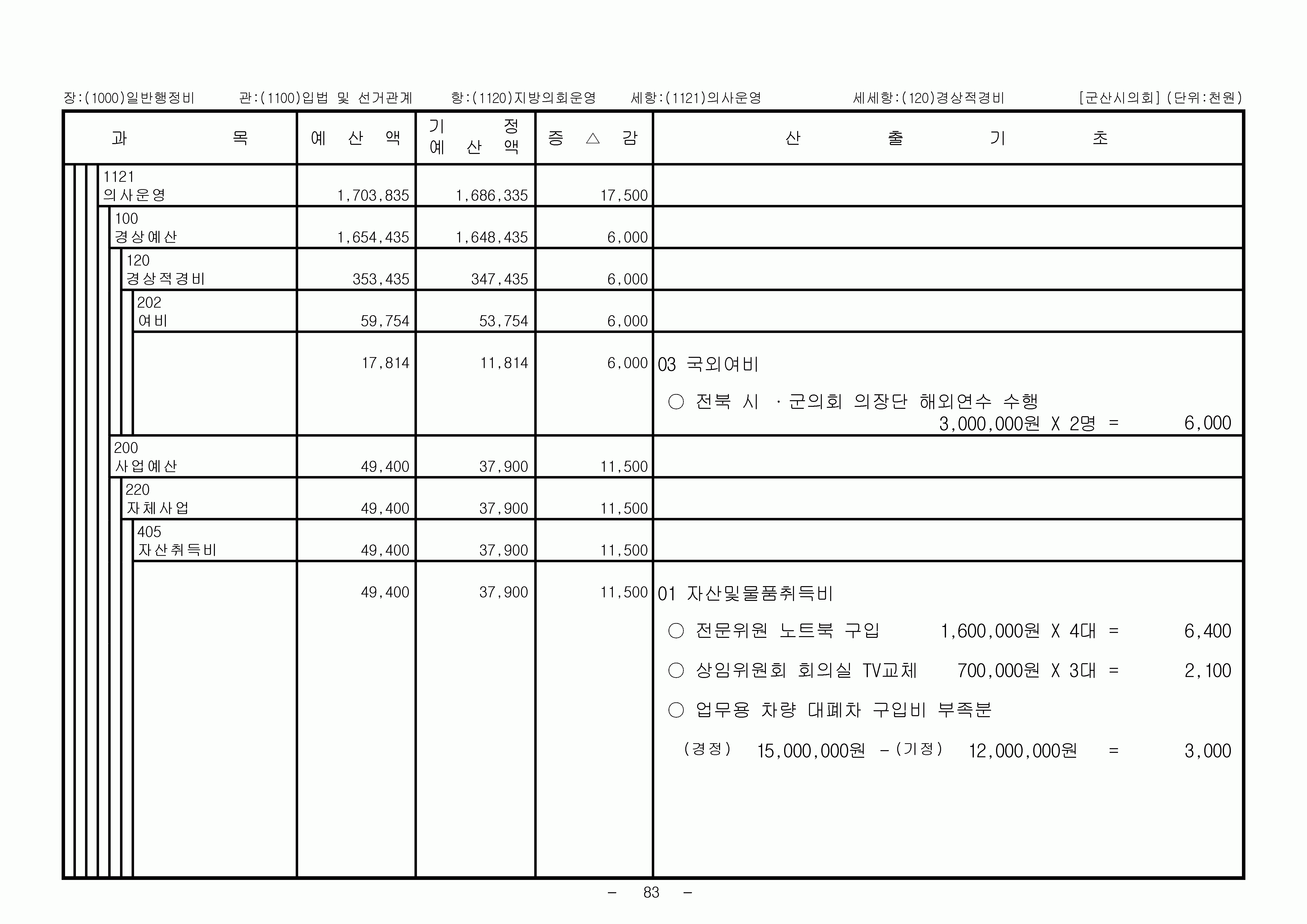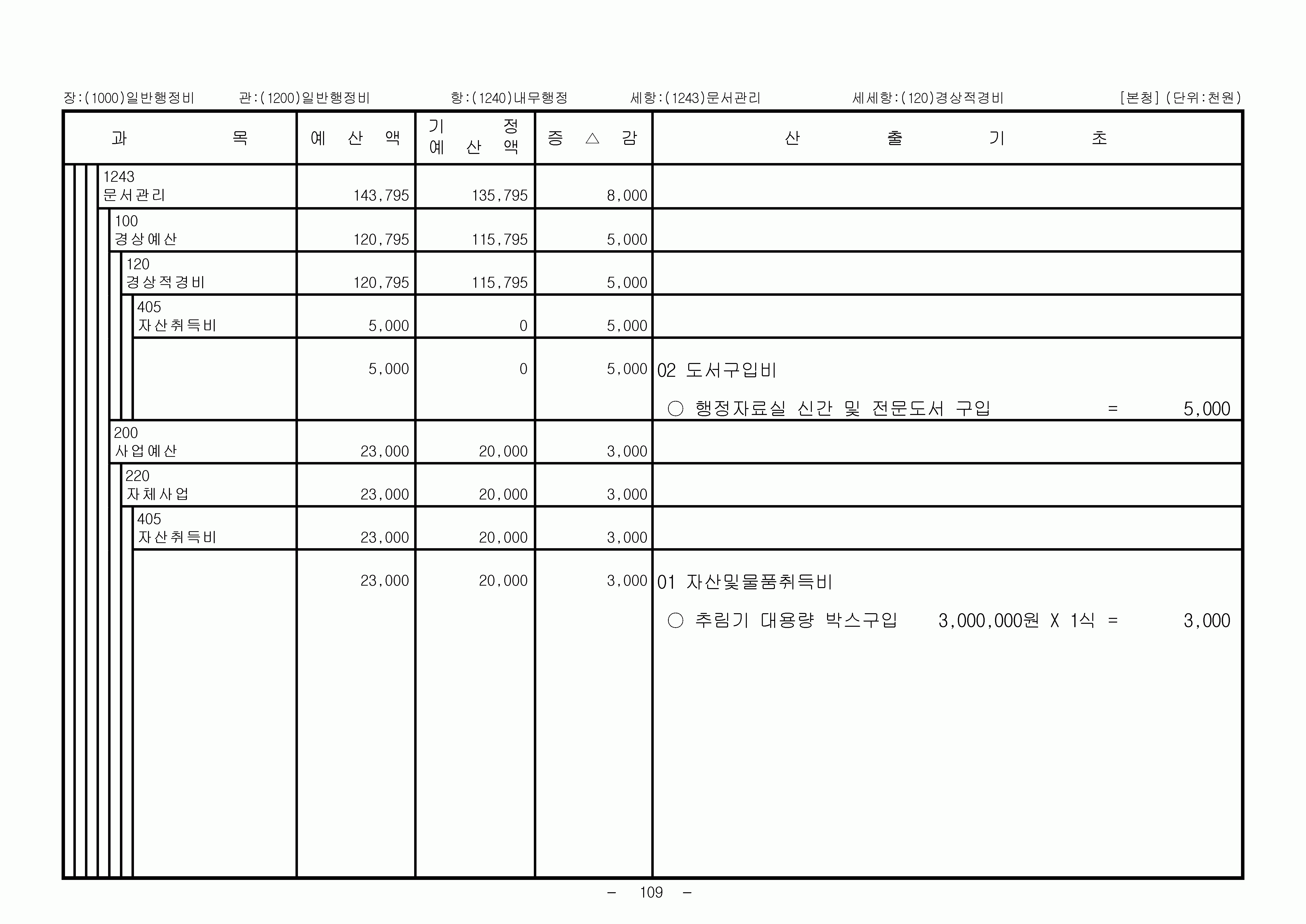 2007년 1차 추경예산총칙 일반회계세출 일반행정