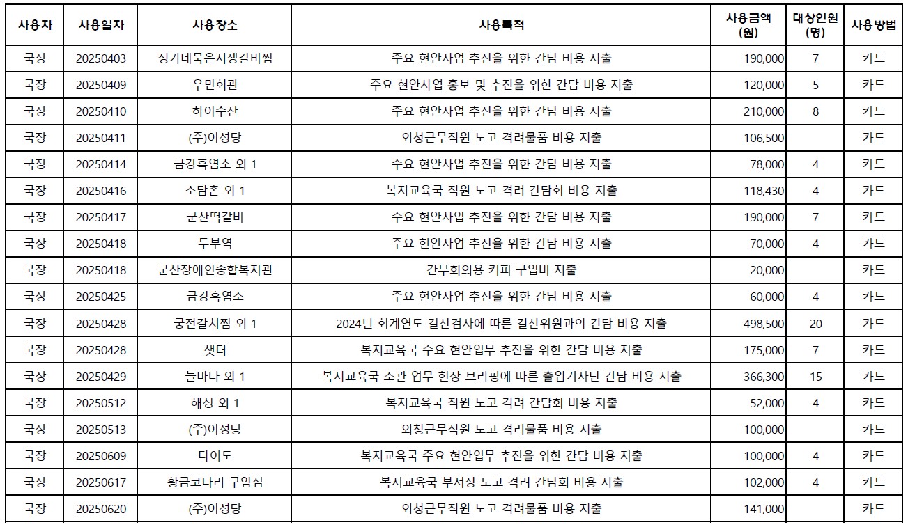 | 53 | 2025. 2분기 복지교육국 업무추진비 집행내역 |