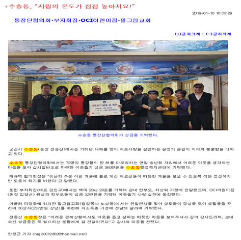| 16 | 수송동 사랑의 온도 쑥쑥, 성금 줄이어 |