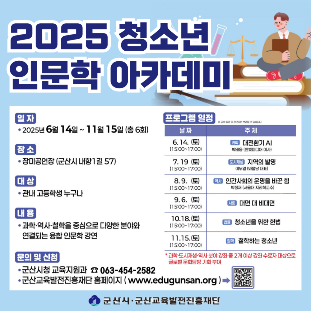 | 6213 | 2025년도 청소년 인문학 아카데미 참여학생 모집 |