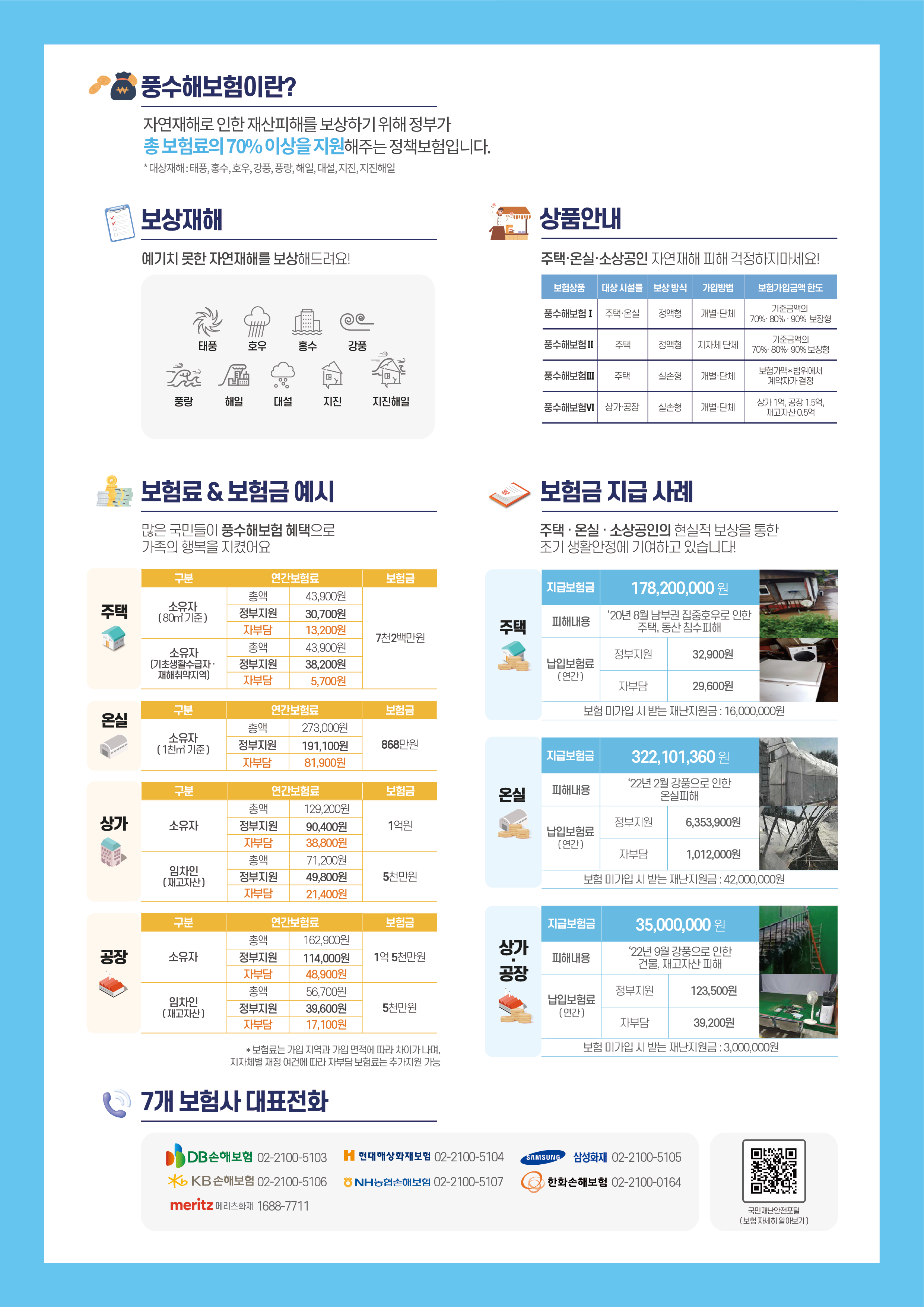 풍수해보험은 태풍, 호우, 강풍, 대설, 지진 등 자연재해 발생 시 주택, 온실, 소상공인의