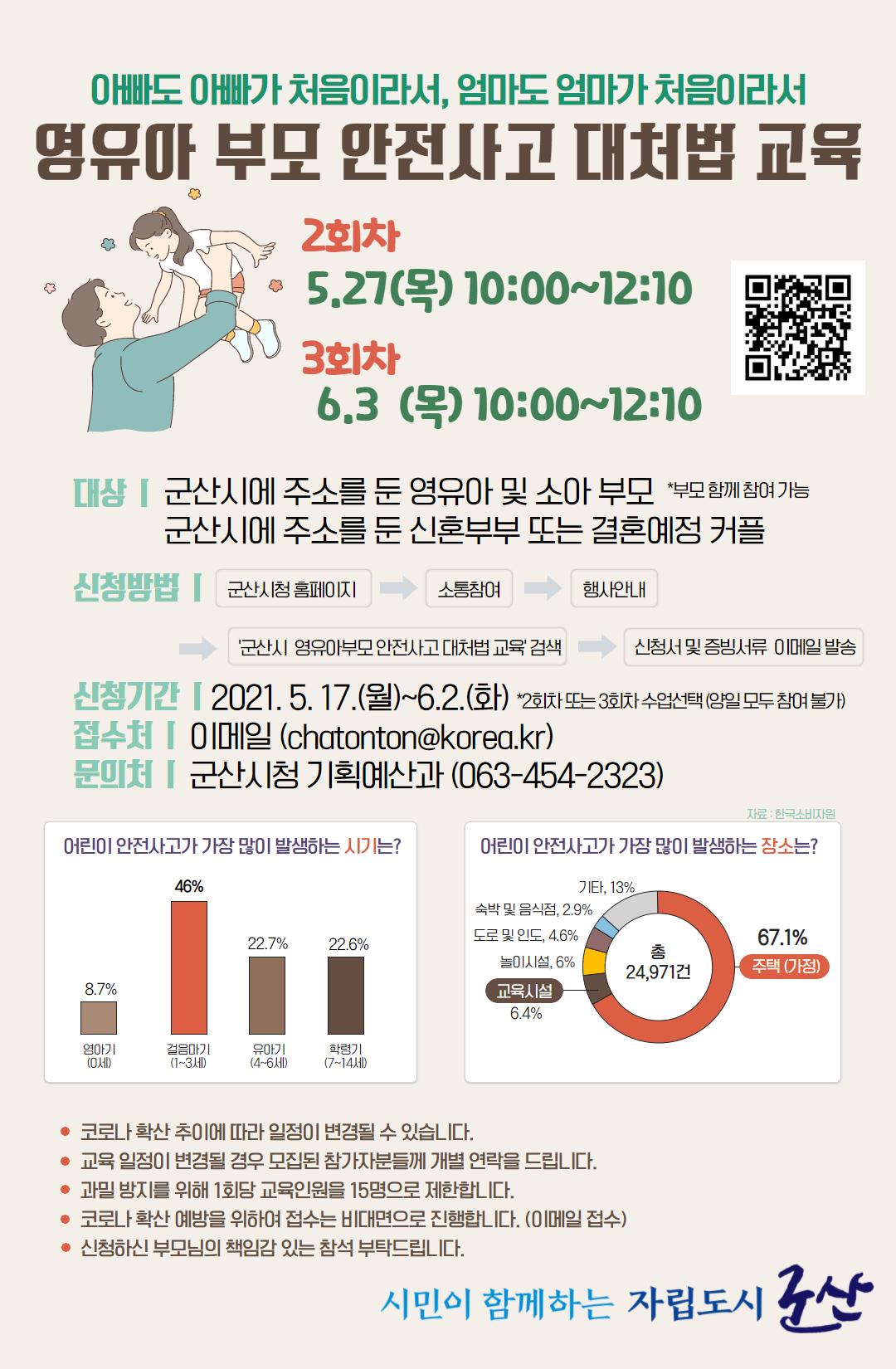 응급상황에 대한 올바른 대처를 통해 사회안전망 확대에 기여하고자 영유아 부모님을 대상으로 안전사고 대처법 교육을 실시합니다.