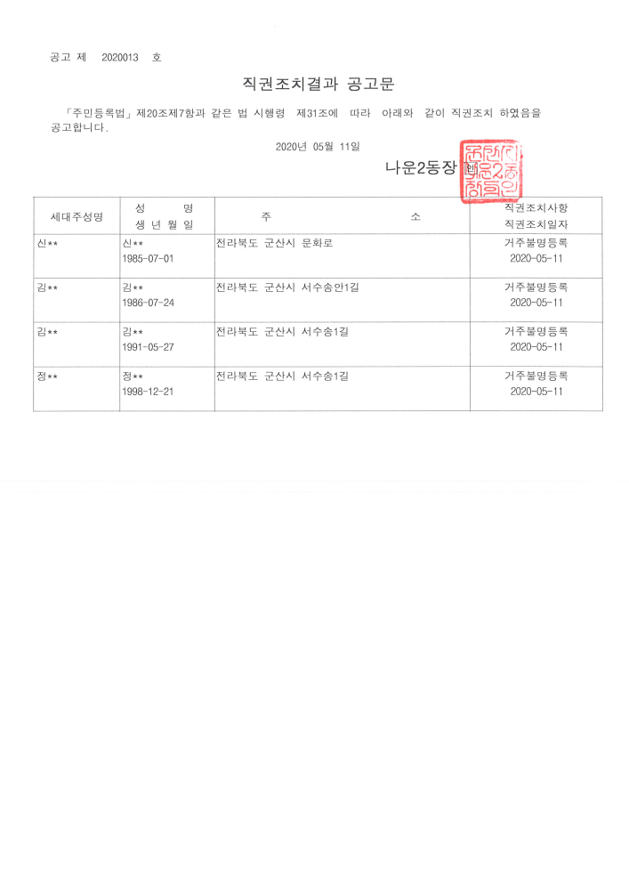 | 48 | 주민등록 신고의무 불이행자 직권조치 결과 공고 |