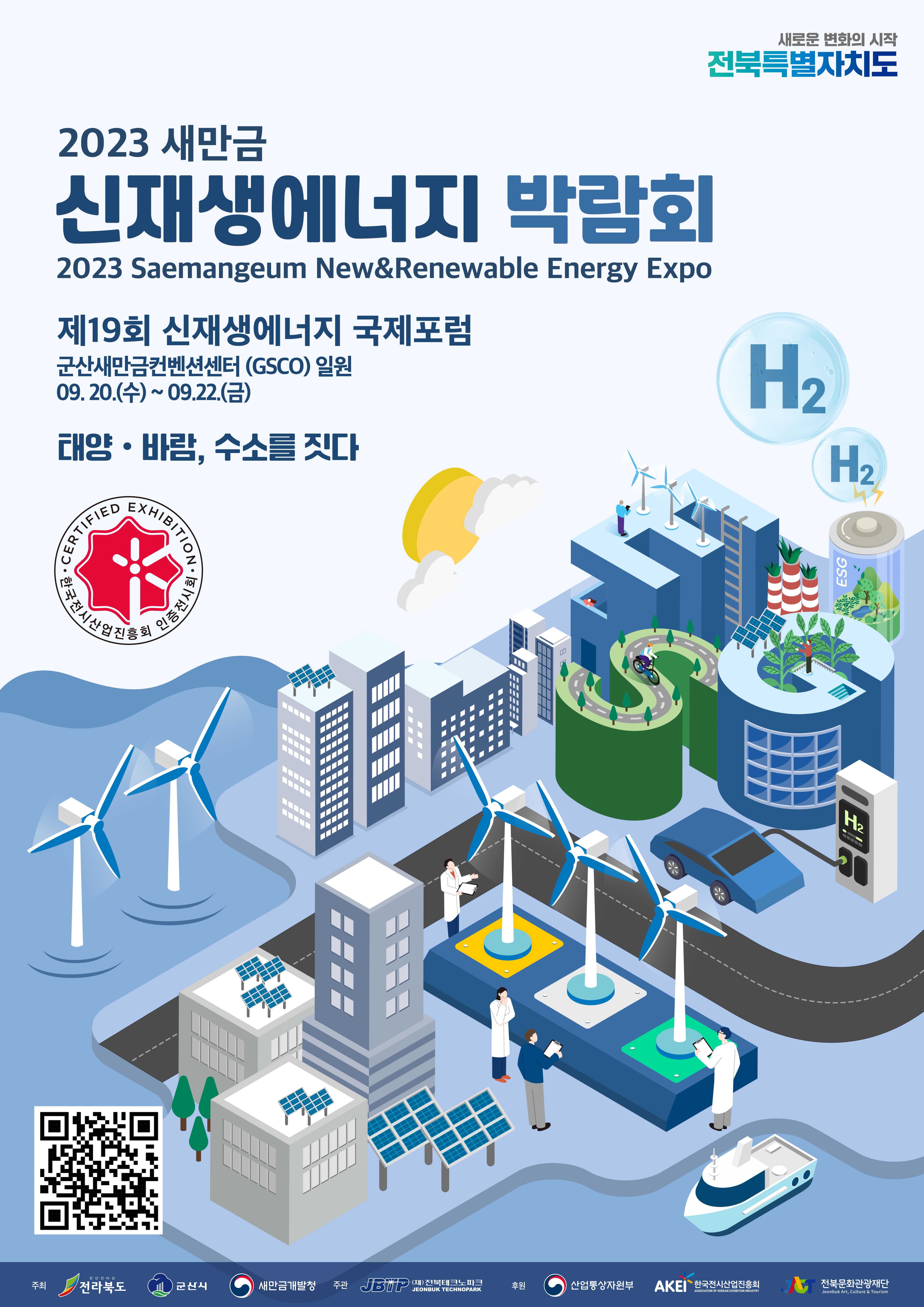 전북테크노파크에서는 국제경쟁력을 확보한 신재생에너지산업 허브로 성장하기 위해 2023 새만금 신재생에너지 박람회를 개최합니다!!!