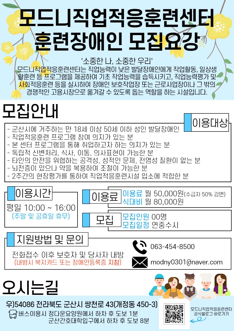 | 400 | 모드니직업적응훈련센터 훈련장애인 모집 홍보 |
