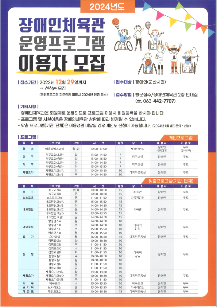| 589 | 장애인체육관 운영프로그램 이용자 모집 |