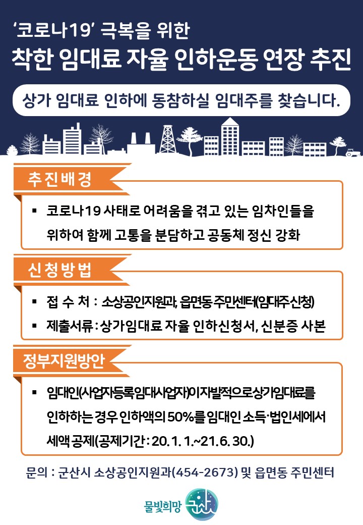 | | ‘조세특례제한법’ 개정 관련 착한 임대료 자율 인하운동 안내 |