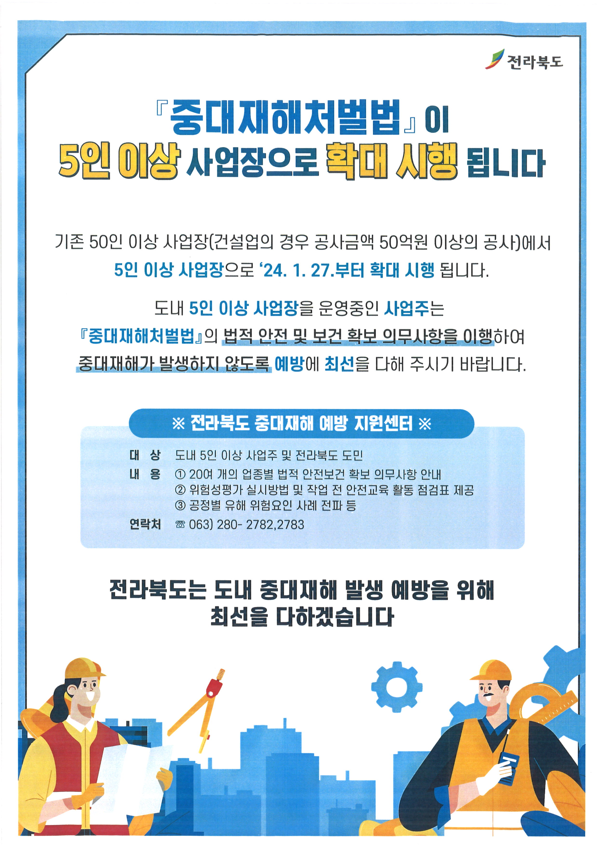2. 확대내용 : 기존 50인 이상 사업장(건설업은 공사금액 50원원이상)에서 ⇛ 5인 이상 사업장으로 확대