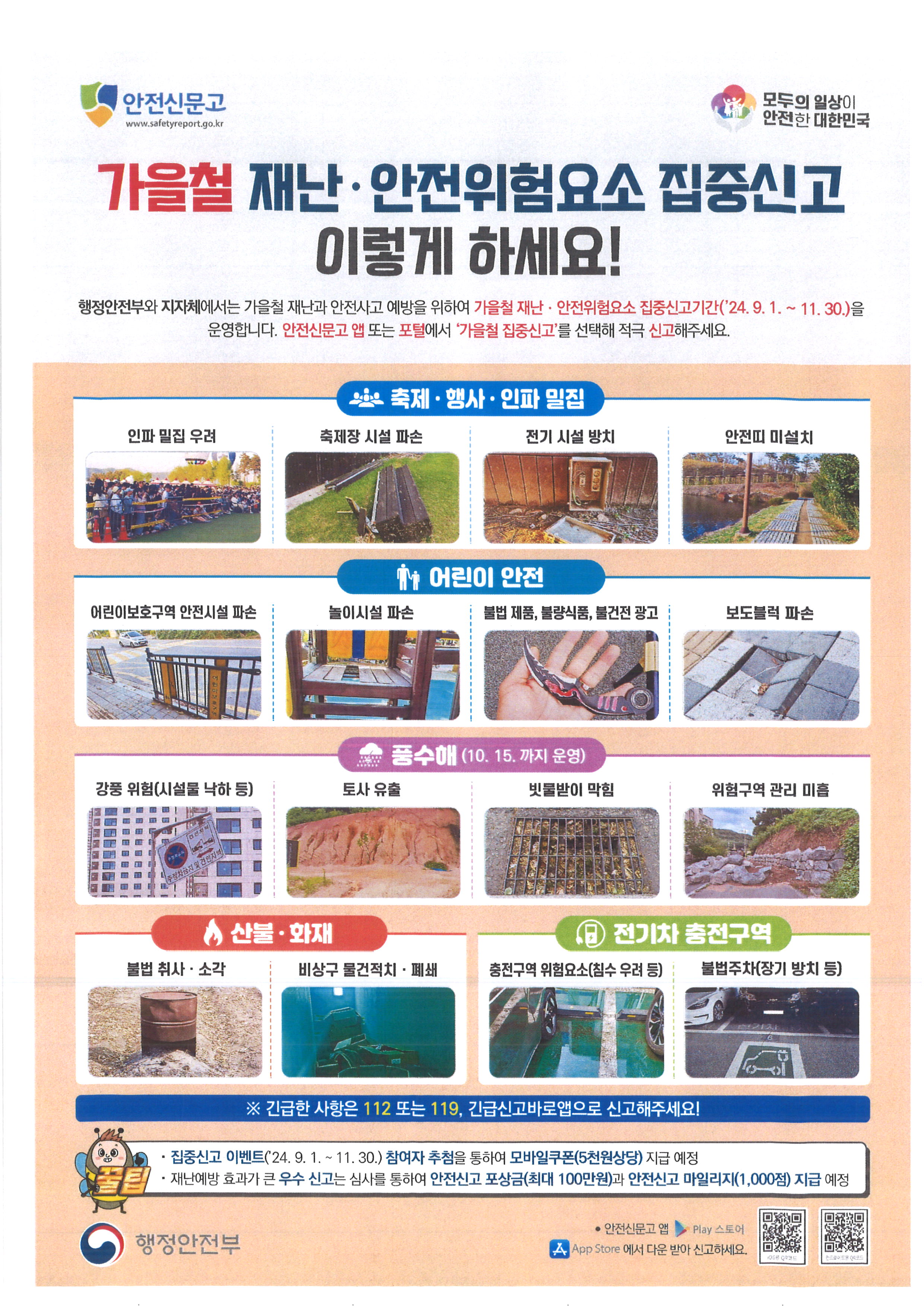 가을철 재난 안전위험 요소 집중신고기간 운영 안내