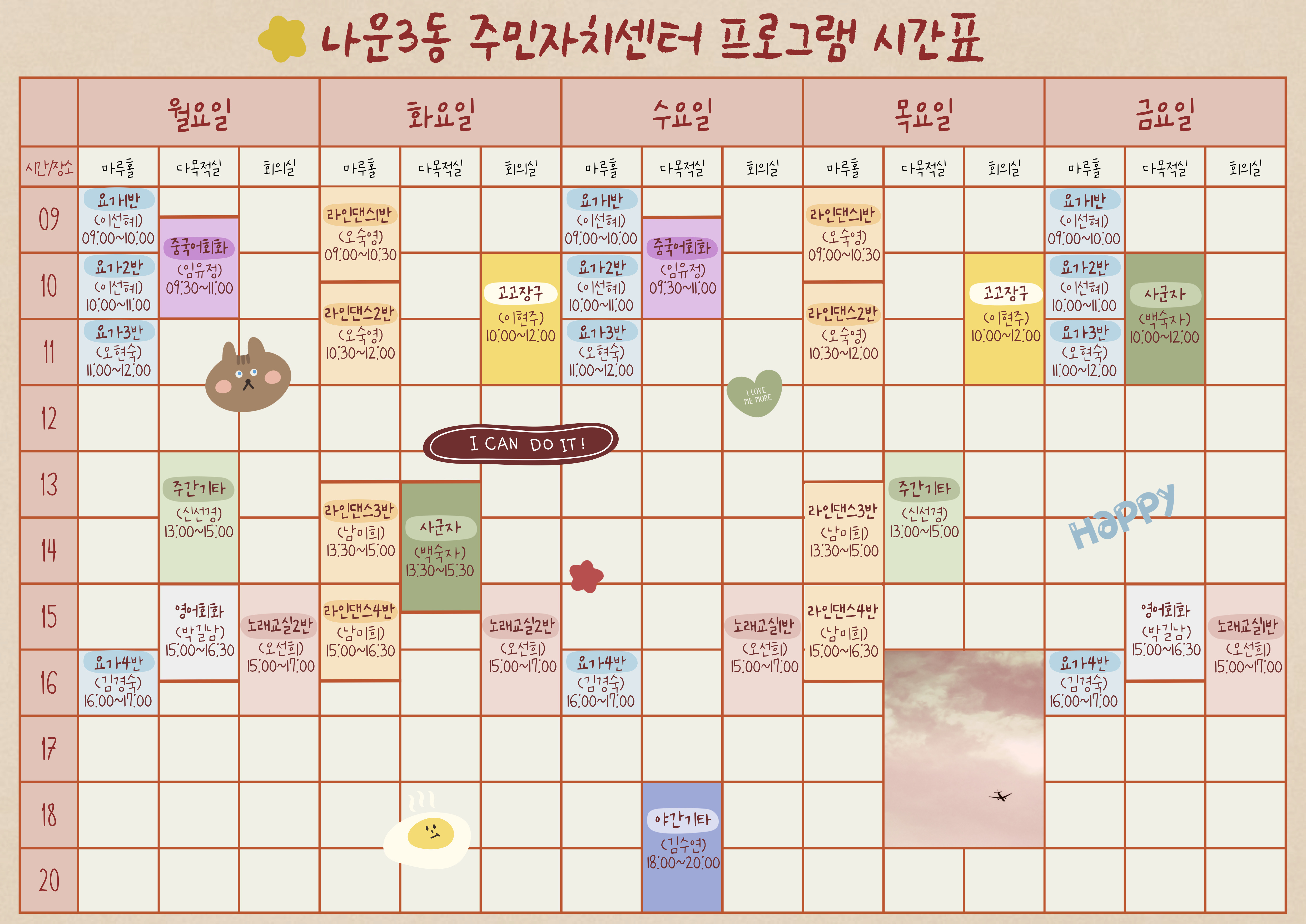| 13 | 2025년 3분기 나운3동 주민자치프로그램 시간표입니다. |