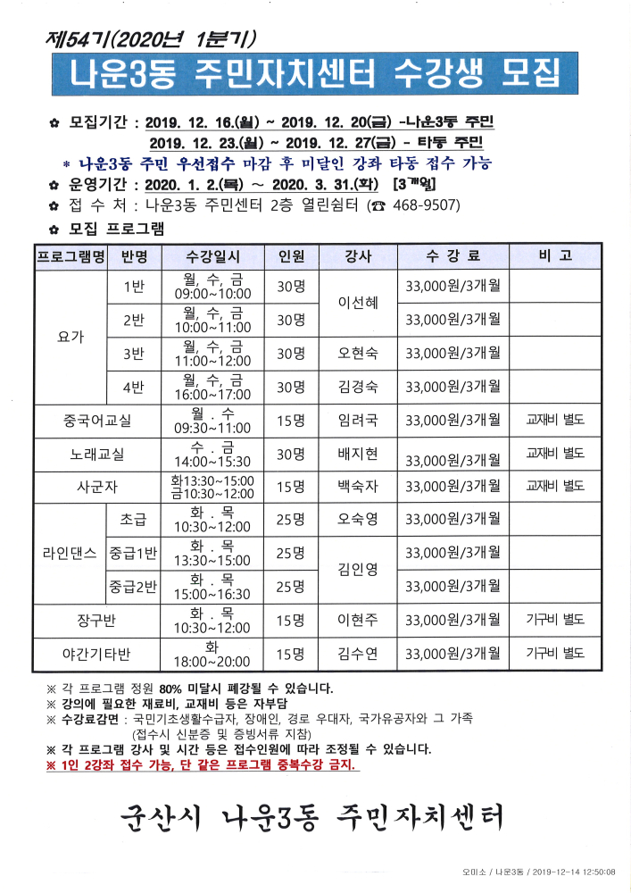 군산시청 에서 제작한 "자치센터 프로그램"저작물은