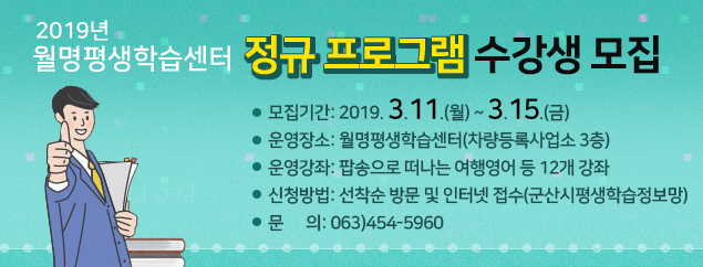 2019년 월명평생학습센터 정규 프로그램 수강생 모집