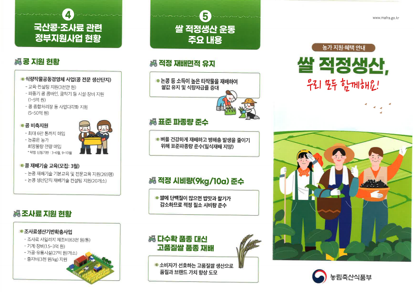 인센티브 : 공공비축미 추가 배정(최대 300포/ha), 농식품부 사업선정시 우대 등