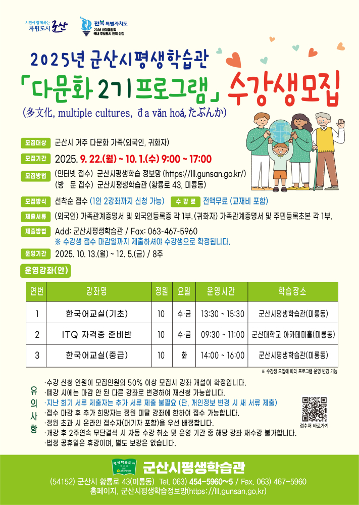 | 327 | 2025년 군산시평생학습관 다문화 2기 수강생 모집 |