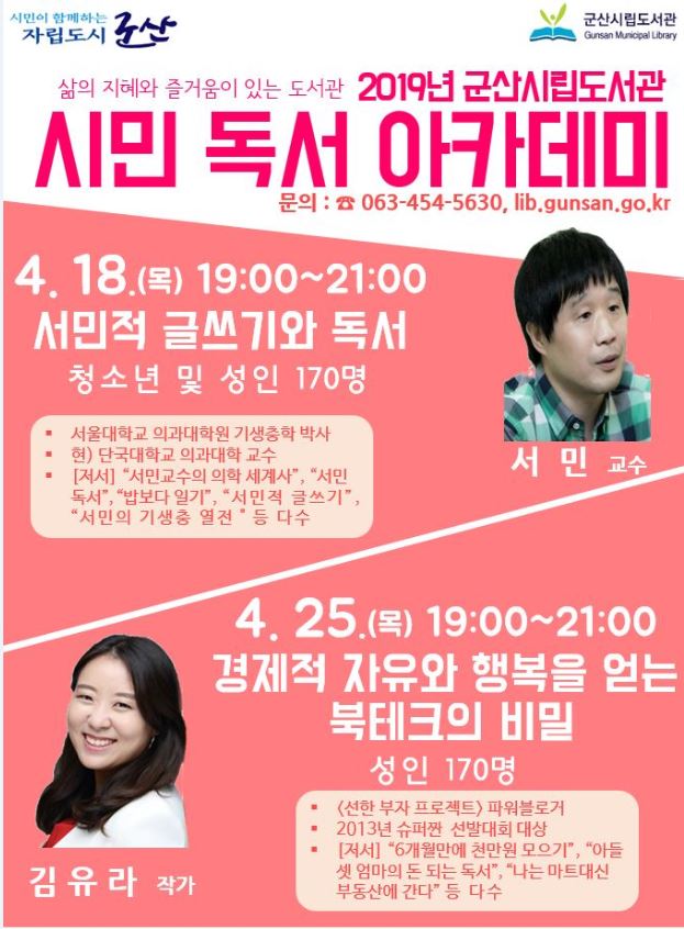 시립도서관에서는 삶의 지혜와 즐거움이 있는 시민독서 아카데미를 운영하고 있습니다.