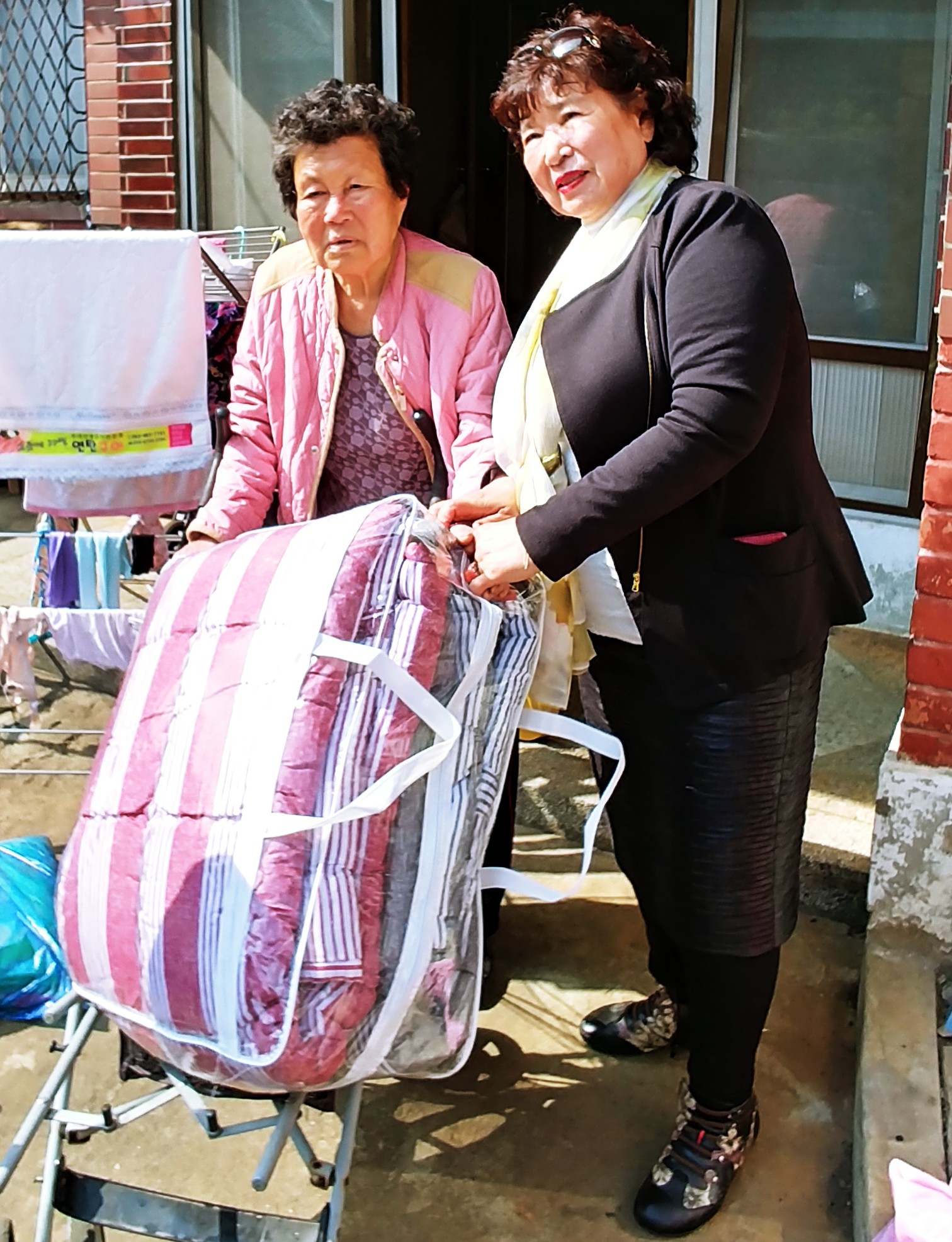 어르신댁을 찾아 이불 2점을 전달하며 위로의 마음을 전하였습니다.