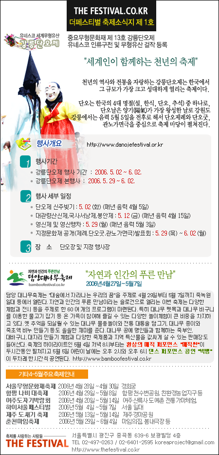 261 천년의 혼을 담은 강릉단오제 그 막이 곧 열립니다. 다운받기 *** 06.04.26 9508