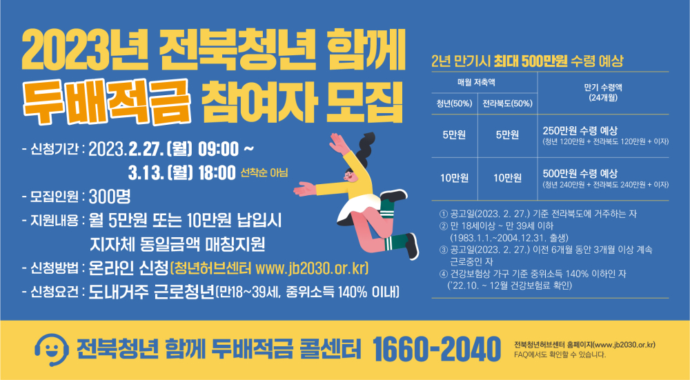 | 5774 | 2023년 전북청년 함께 두배적금 사업 참여자 모집 |