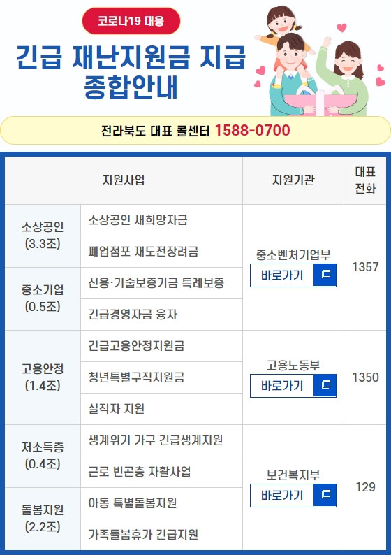 전라북도 콜센터와 분야별 사업주관 부처 콜센터를 안내하오니 참고하시기 바랍니다.