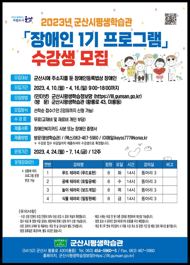 2023 군산시평생학습관 장애인 1기 프로그램 운영에 따른