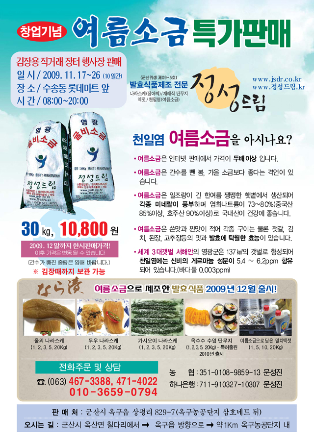 4211 군산시 김장용 직거래장터 여름소금 특가판매 다운받기 *** 09.11.13 1489