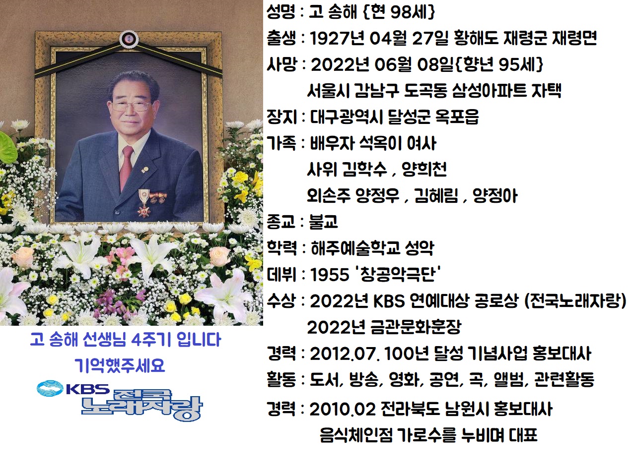 | 8462 | 제4 주기 故 송해 선생님 오늘 입니다 |