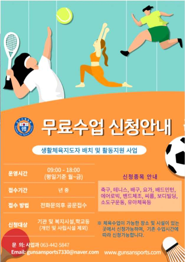 | 94 | 생활체육지도자 무료수업 신청 안내 |