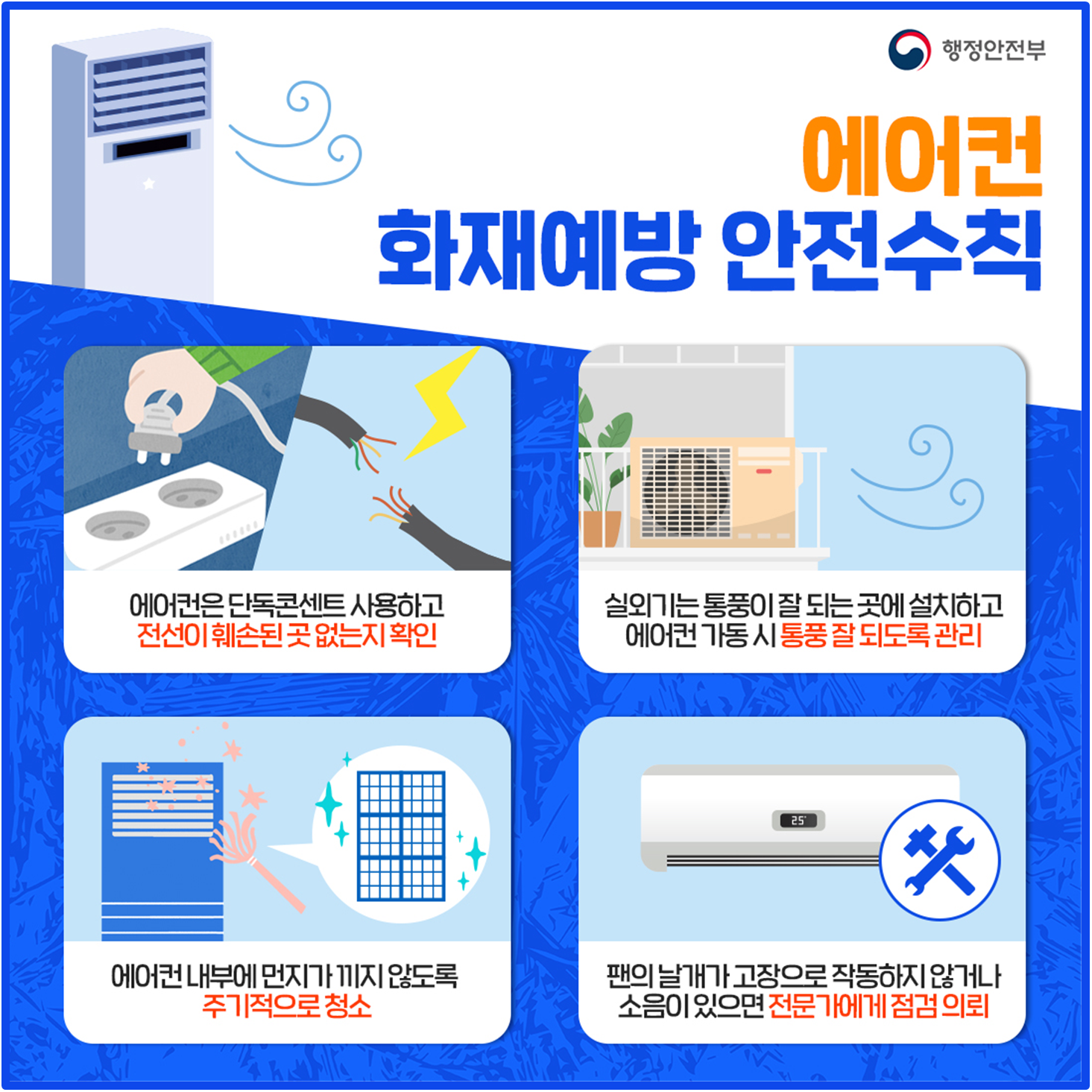 행정안전부에서는 에어컨, 선풍기 사용이 급증하는 여름철이 다가옴에 따라