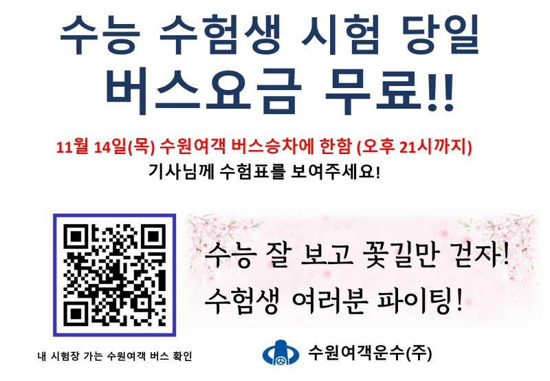 7555 2020 수능 시험장 경우하는 수원여객 무료탑승 다운받기 *** 19.11.12 4622