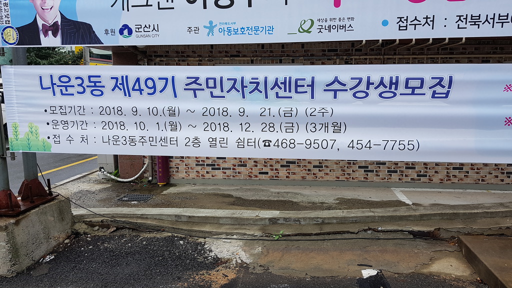 나운3동 주민으로 65세이상은 수강료 무료입니다