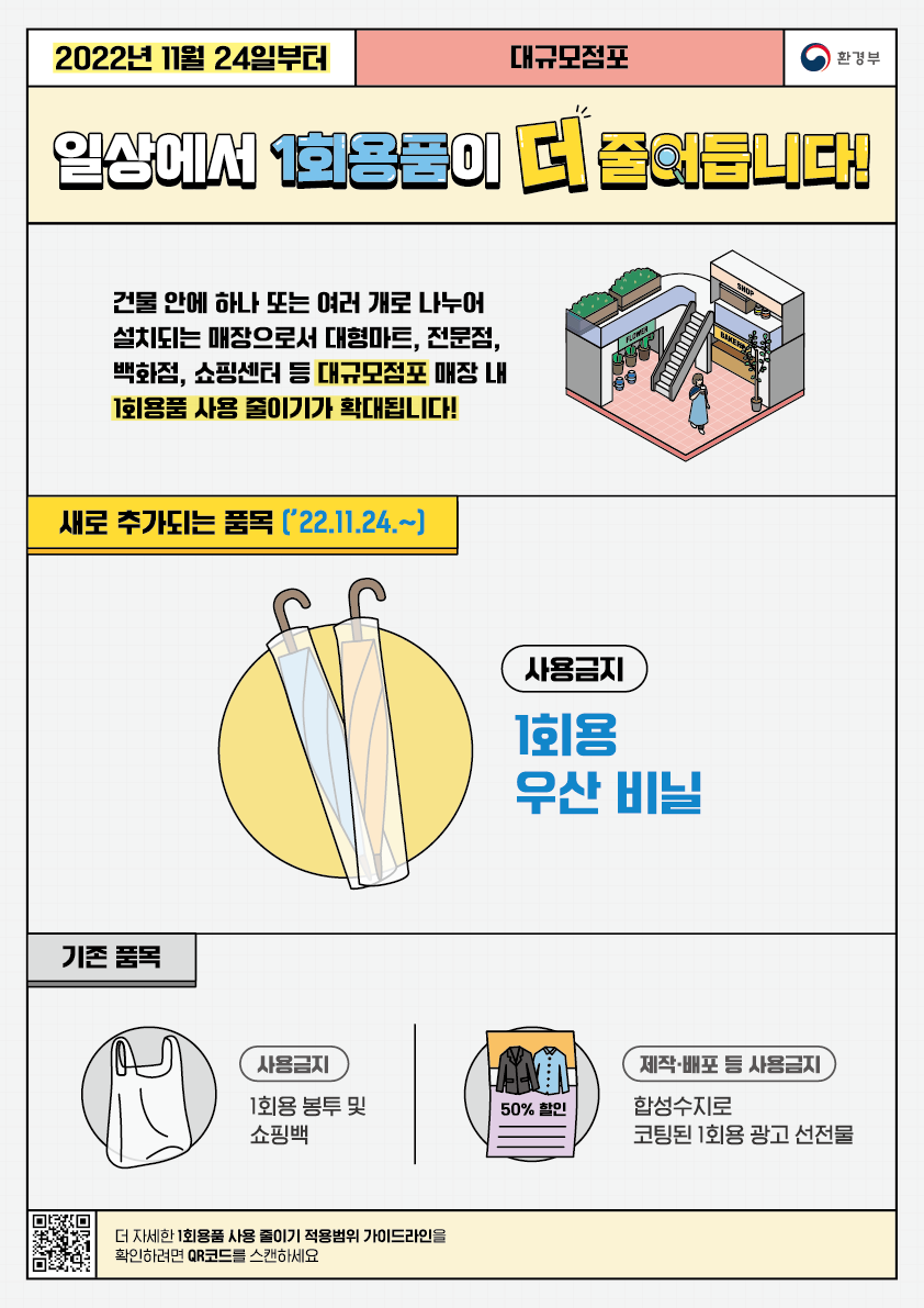 ○ 규제내용: 2022. 11. 24.부터 1회용품 사용규제 품목 추가 및 강화