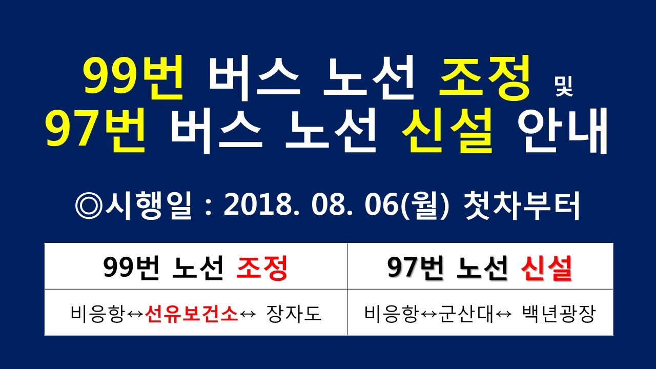 관광형 시내버스 일부 노선 (99번) 버스조정 및 신설(97번) 버스 시간표 변경 안내