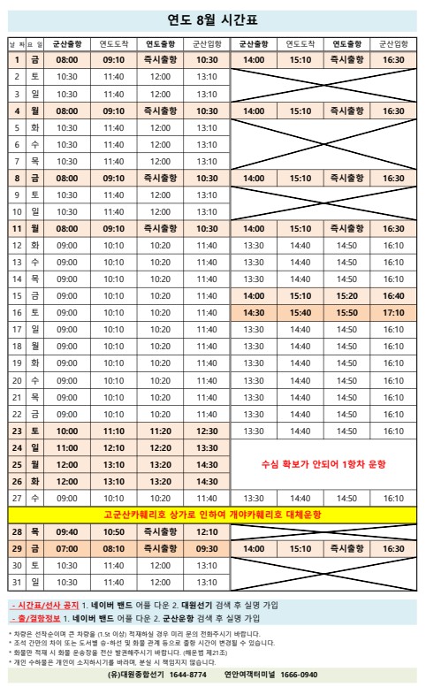 | 98 | 연도 | 2025 | 8 | 연도 8월 여객선 시간표 안내 |