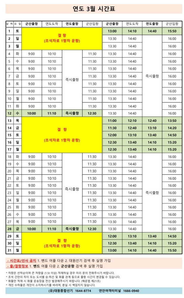 | 714 | 연도 | 2025 | 3 | 연도 3월 여객 시간표 안내 |