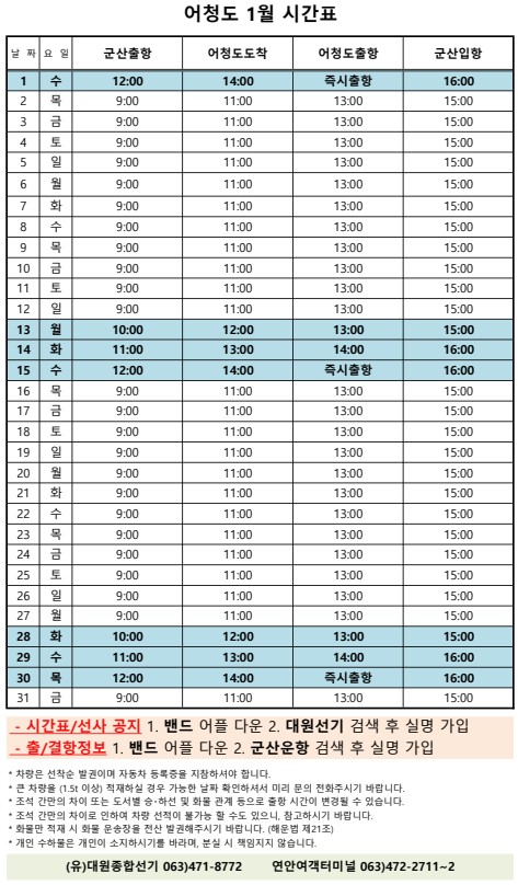| 697 | 어청도 | 2025 | 1 | 어청도 1월 여객시간표 알림 |