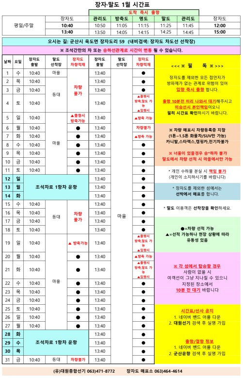 | 696 | 장자도 | 2025 | 1 | 장자도 1월 여객시간표 알림 |