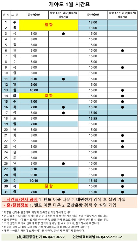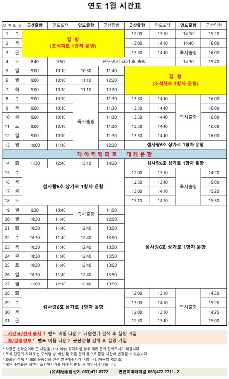 | 703 | 개야도 | 2025 | 1 | 개야도 1월 여객시간표 알림 |