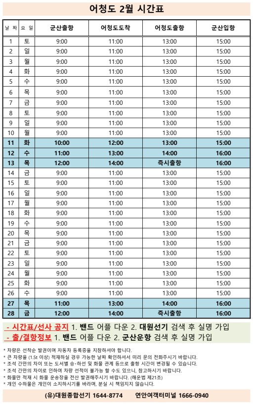 | 705 | 어청도 | 2025 | 2 | 어청도 2월 여객시간표 |