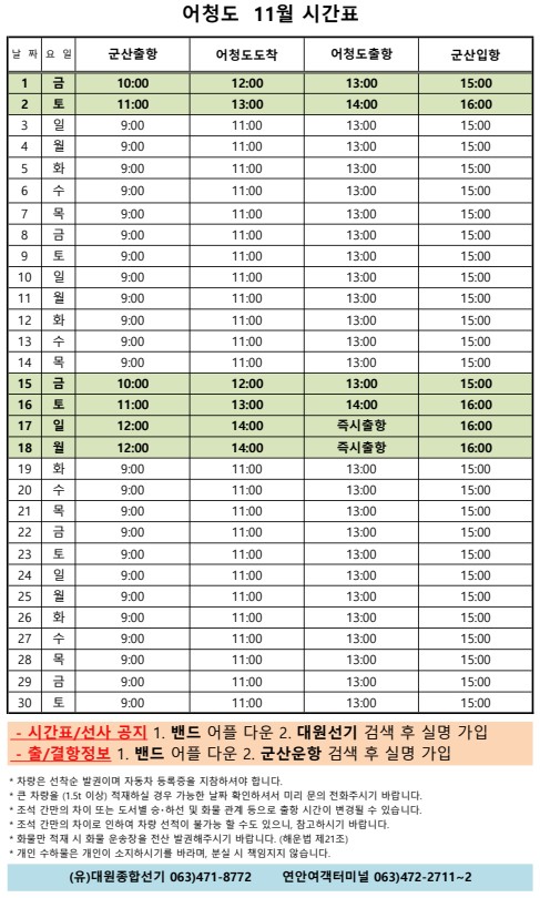여객선 안내 -군산 연안여객터미널 (유) 대원종합선기 1644-8774 (임해로 378-8)(어청도 개야도 연도)